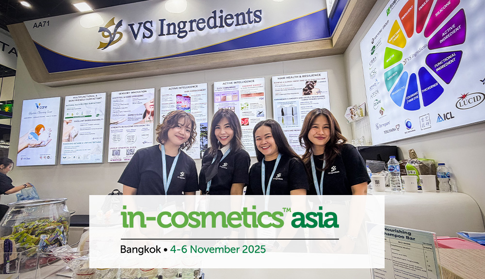 เสร็จสิ้นไปเป็นที่เรียบร้อยแล้วสำหรับงานมหกรรมส่วนผสมเครื่องสำอางชั้นนำแห่งเอเชียแปซิฟิก in-cosmetics Asia 2024 ซึ่งจัดขึ้นเมื่อวันที่ 5-7 พฤศจิกายน ที่ผ่านมา ณ ศูนย์นิทรรศการและการประชุมไบเทค บางนา กรุงเทพฯ บริษัท วีเอส อินกรีเดียนส์ จำกัด (VS Ingredients) ขอใช้โอกาสนี้รวบรวมภาพความทรงจำและความสำเร็จ พร้อมทั้งขอขอบคุณลูกค้าและผู้มีเกียรติทุกท่านที่ให้ความสนใจและสละเวลาอันมีค่าแวะเวียนมาเยี่ยมชมบูธของเราอย่างล้นหลามตลอดทั้งสามวัน